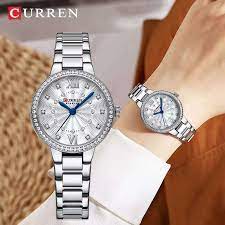 CURREN C-9085L Silver Dial With Silver Stainless Steel Chain Wrist Watch For Women With Brand (Box & Bag)