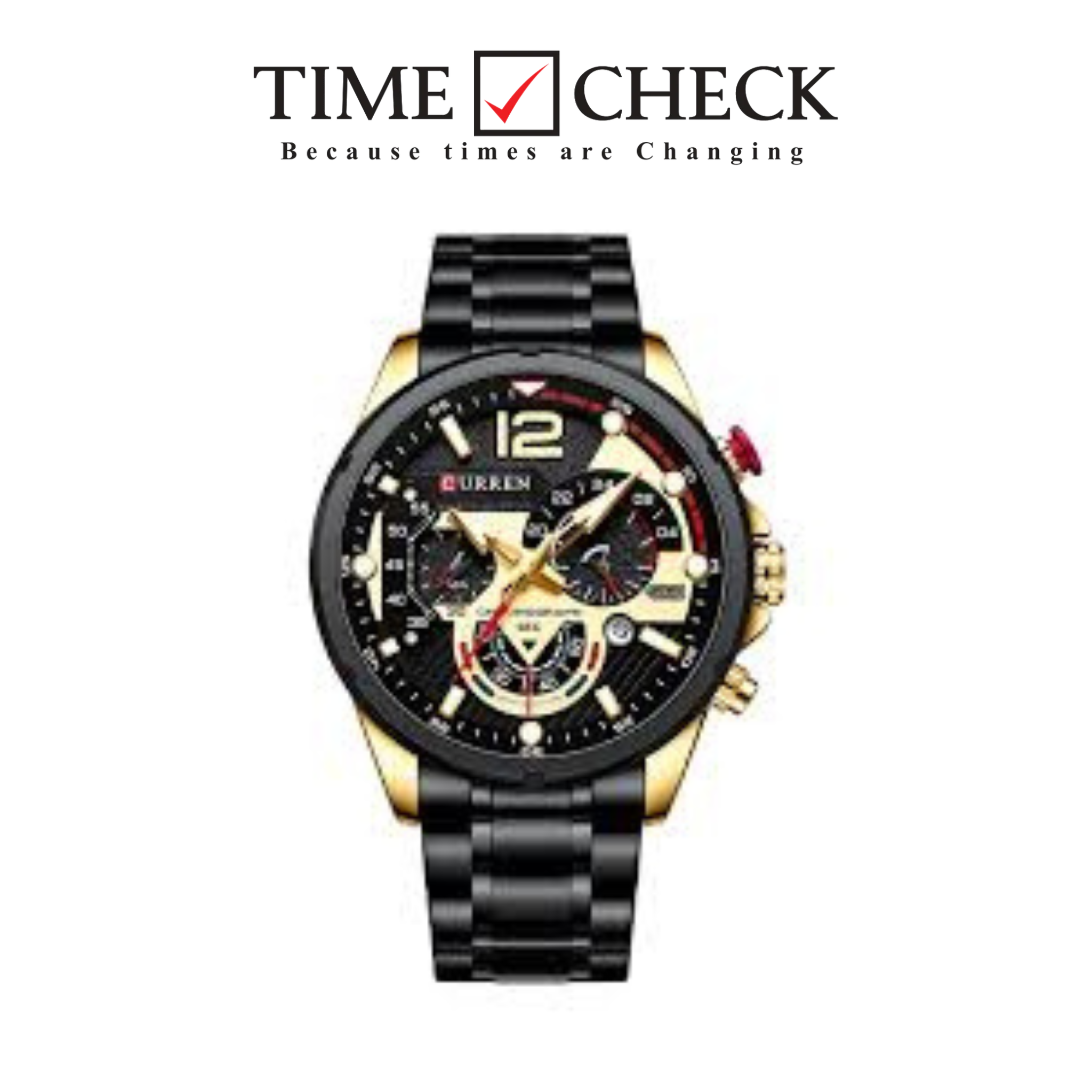 M:8395 CURREN BLACK DIAL GOLDEN CASE BLACK STAINLESS STEEL CHAIN WRIST WATCH FOR MEN WITH BRAND BOX & BAG