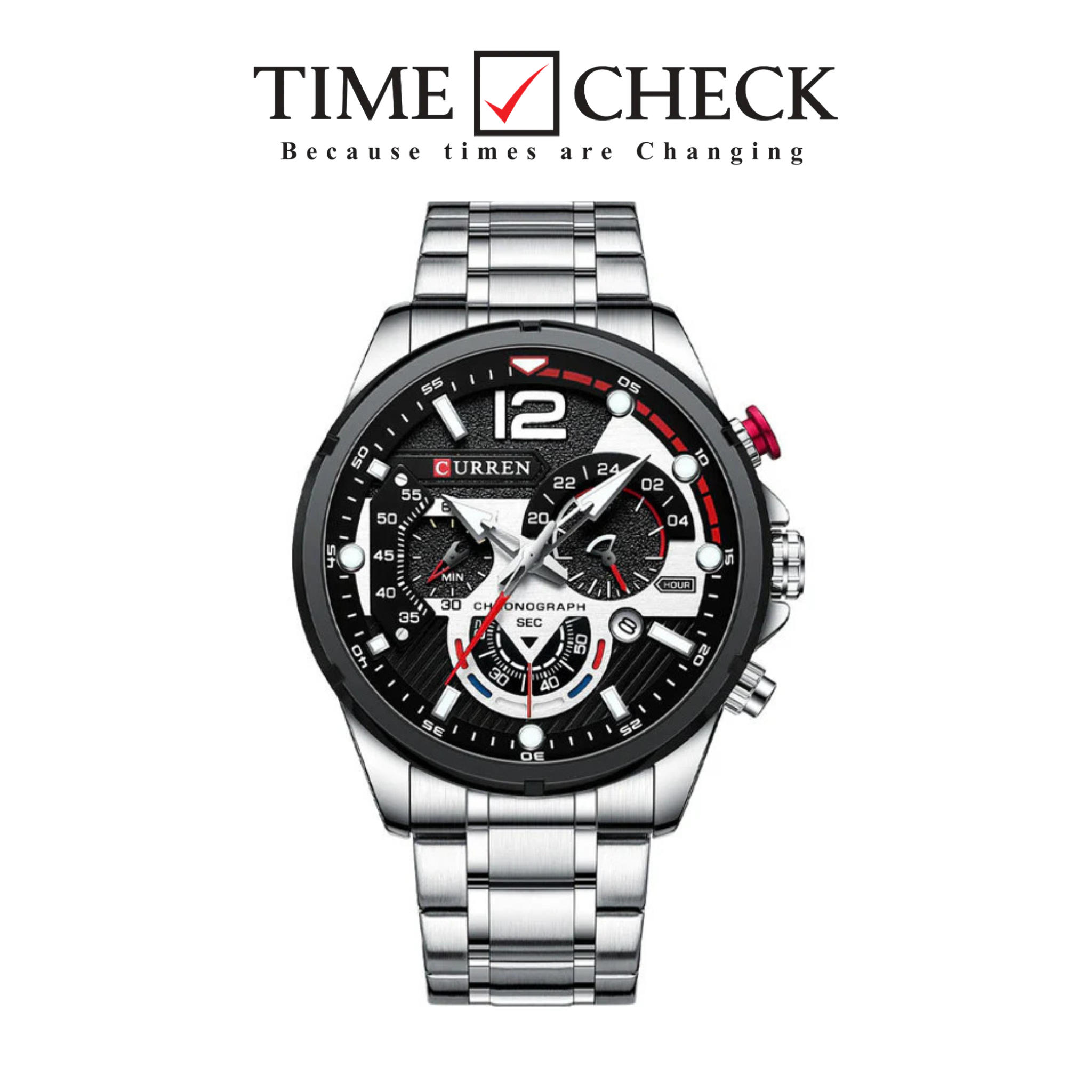 M:8395 CURREN BLACK DIAL SILVER STAINLESS STEEL CHAIN WRIST WATCH FOR MEN WITH BRAND BOX & BAG
