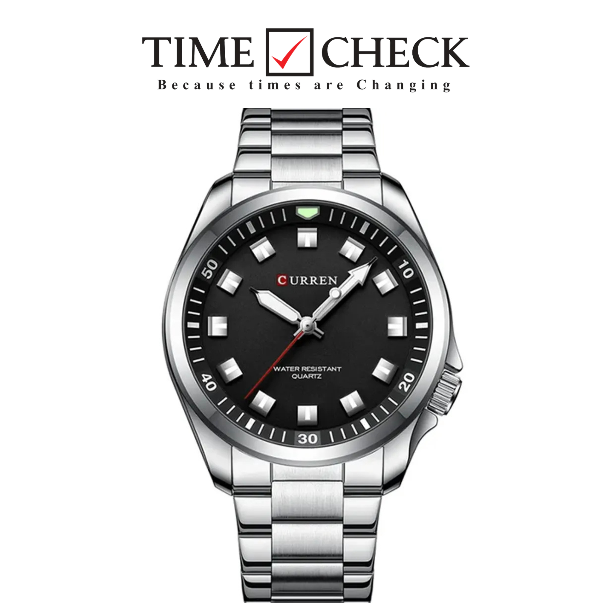 M:8451 CURREN BLACK DIAL SILVER STAINLESS STEEL CHAIN Wrist Watch FOR MEN WITH BRAND (BOX & BAG)