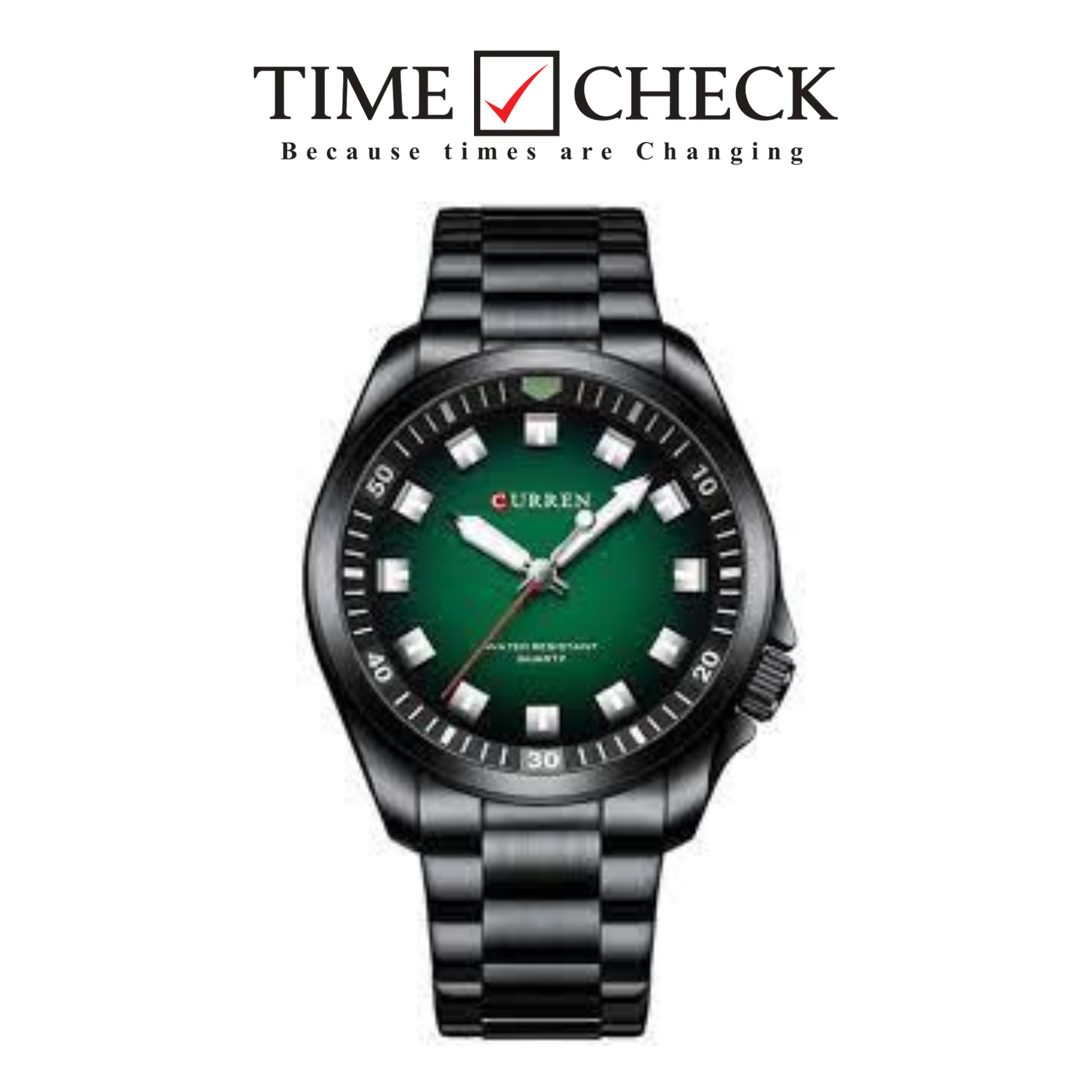 M:8451 CURREN GREEN DIAL BLACK STAINLESS STEEL CHAIN Wrist Watch FOR MEN WITH BRAND (BOX & BAG)