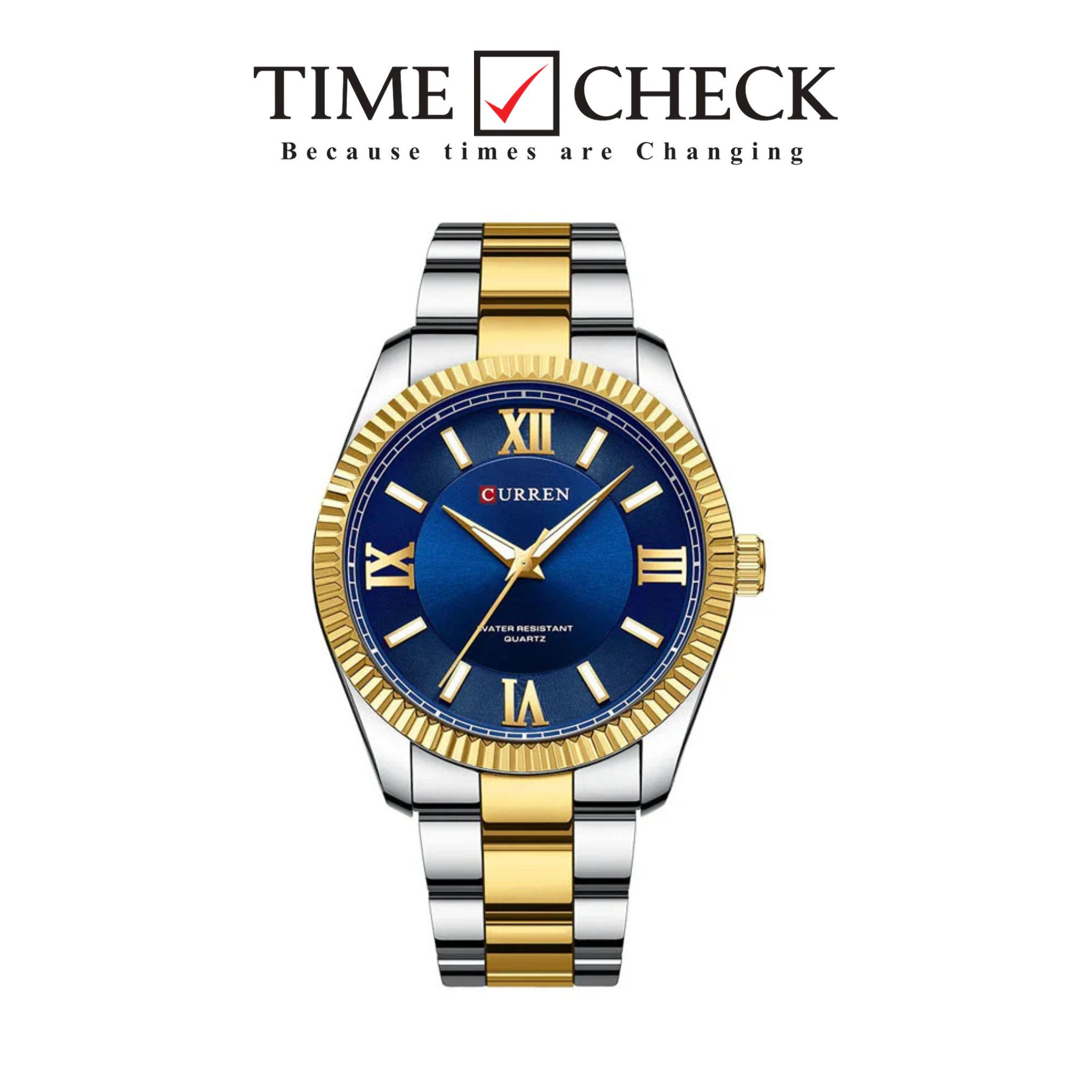 M:8453 CURREN BLUE DIAL SILVER+GOLDEN STAINLESS STEEL CHAIN WRIST WATCH FOR MEN WITH BRAND (BOX & BAG)