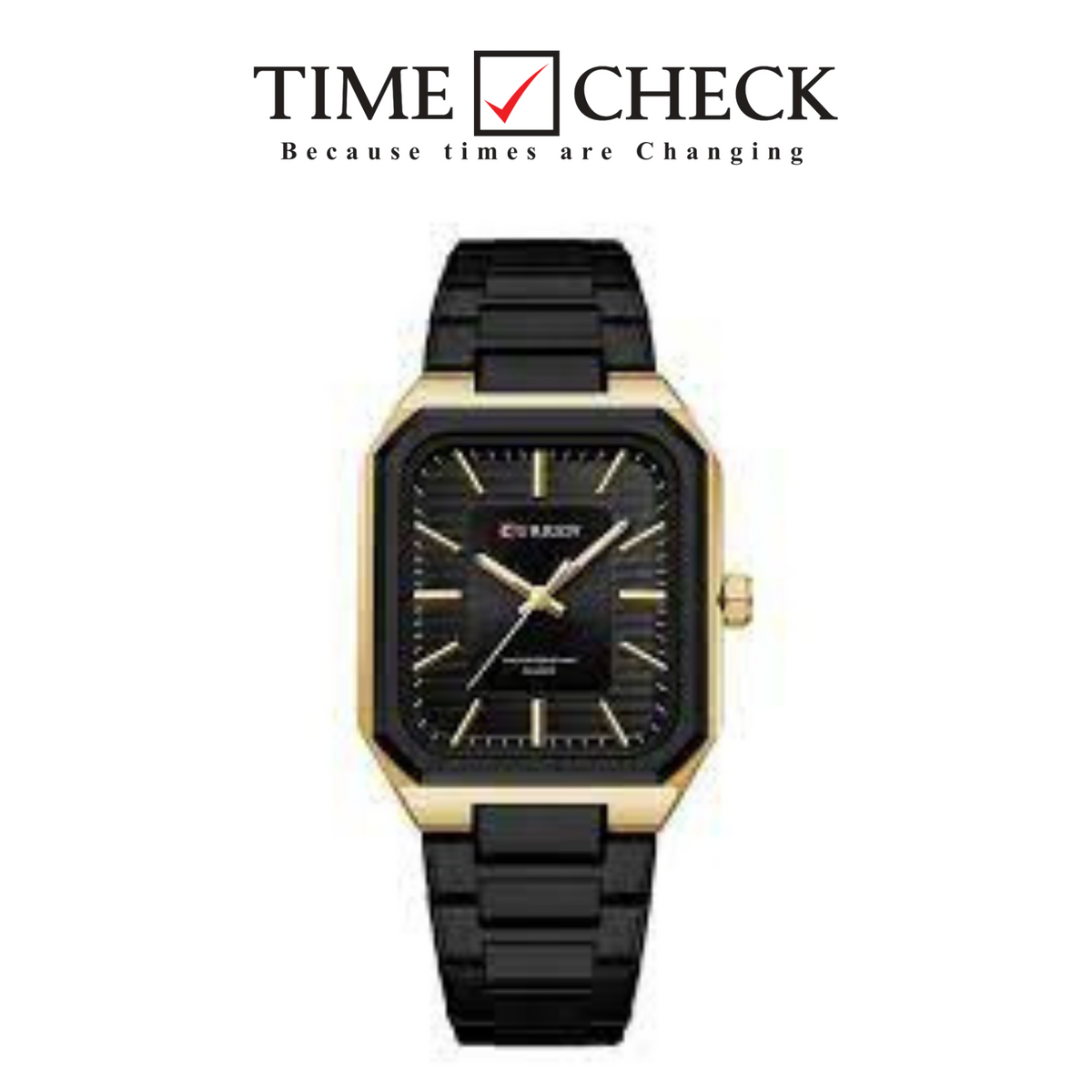 M:8457 BLACK Dial GOLDEN CASE BLACK Stainless Steel Chain Analog Quartz Men's Watch.
