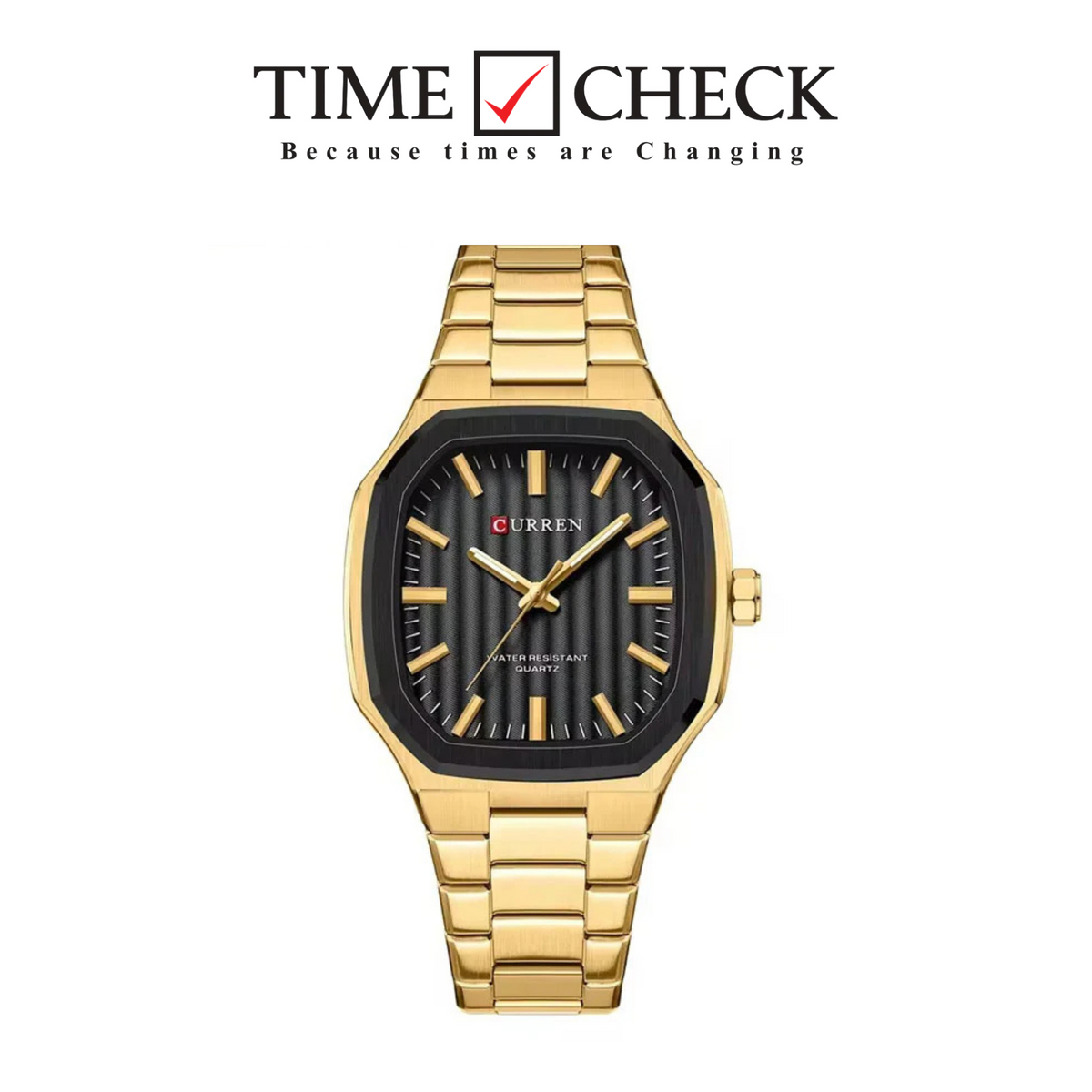 M:8458 CURREN BLACK Dial GOLDEN Stainless Steel Chain Analog Quartz Men's Watch