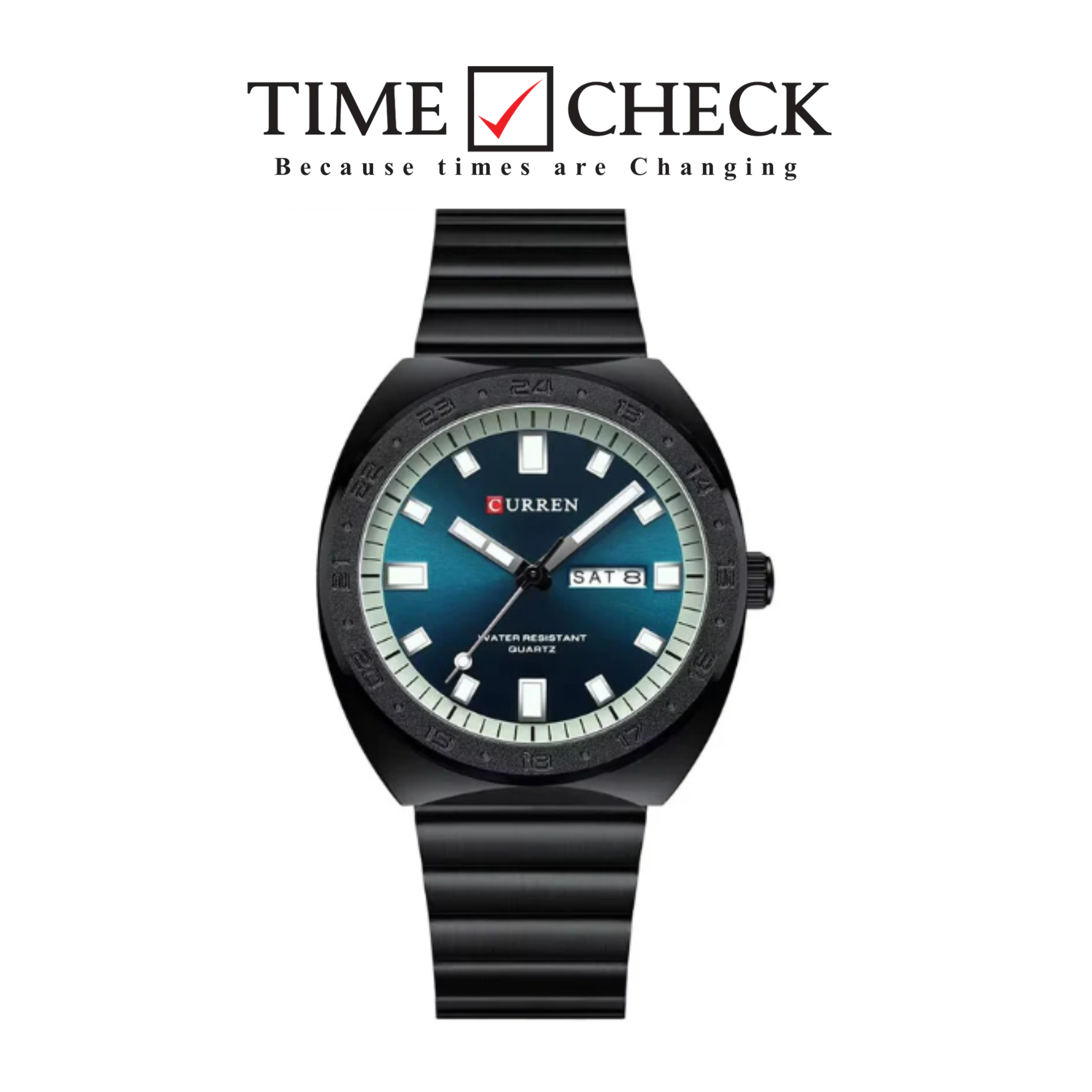 M:8473 CURREN BLUISH DIAL BLACK STAINLESS STEEL CHAIN WRIST WATCH FOR MAN WITH BRAND BOX & BAG