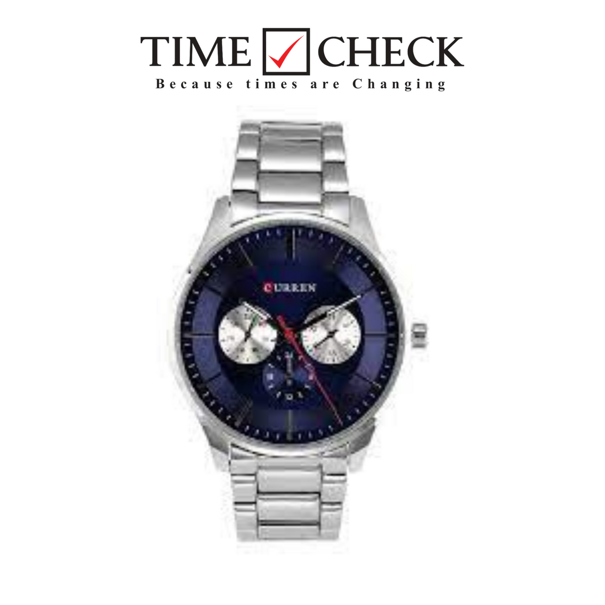 M_8282 Curren Blue Dial Silver Stainless Steel Chain Analog Quartz Men's Watch.