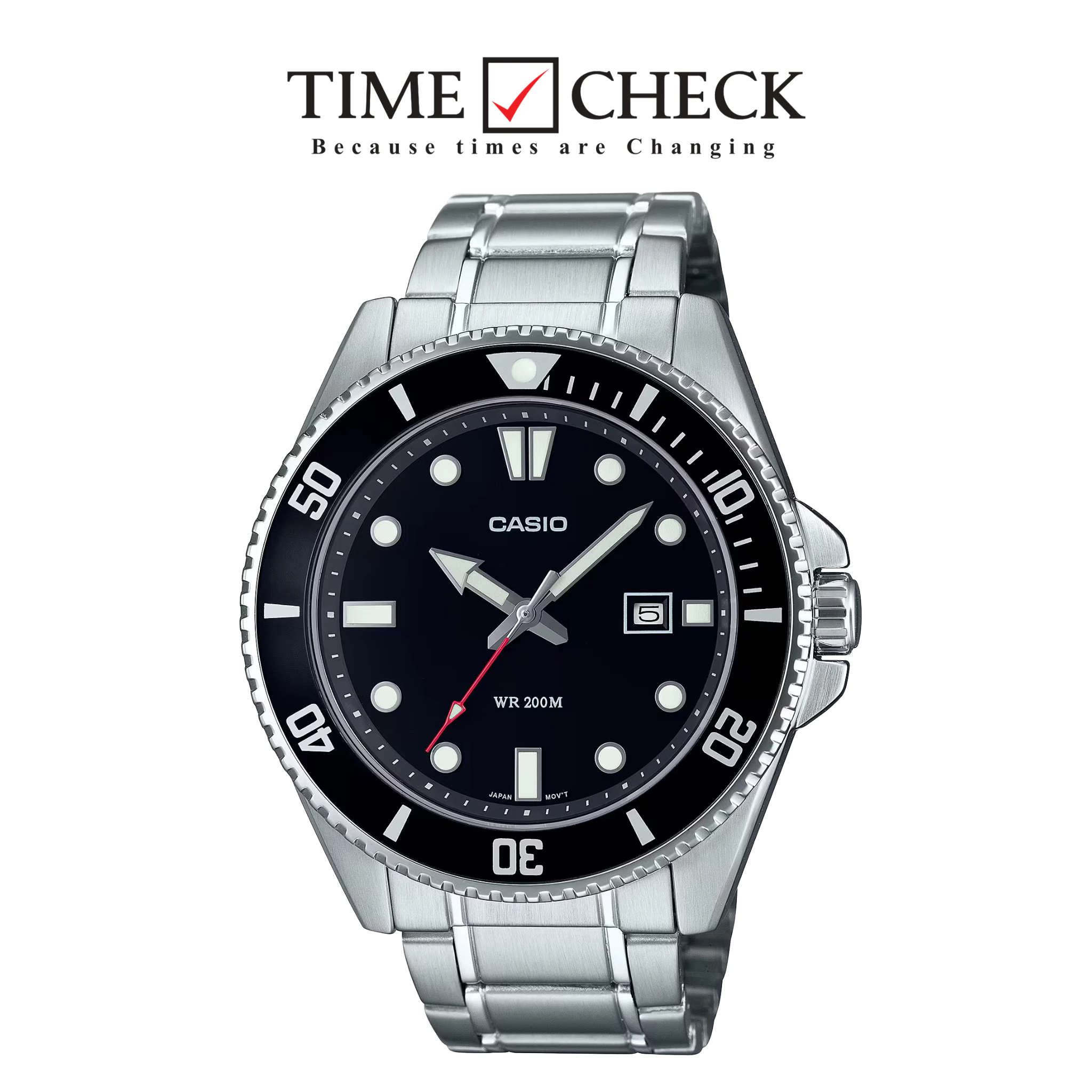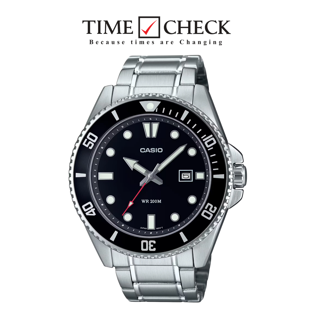 MDV-107D-1A1 Casio Black Dial Silver Stainless Steel Chain Analog Quartz Men's Watch.