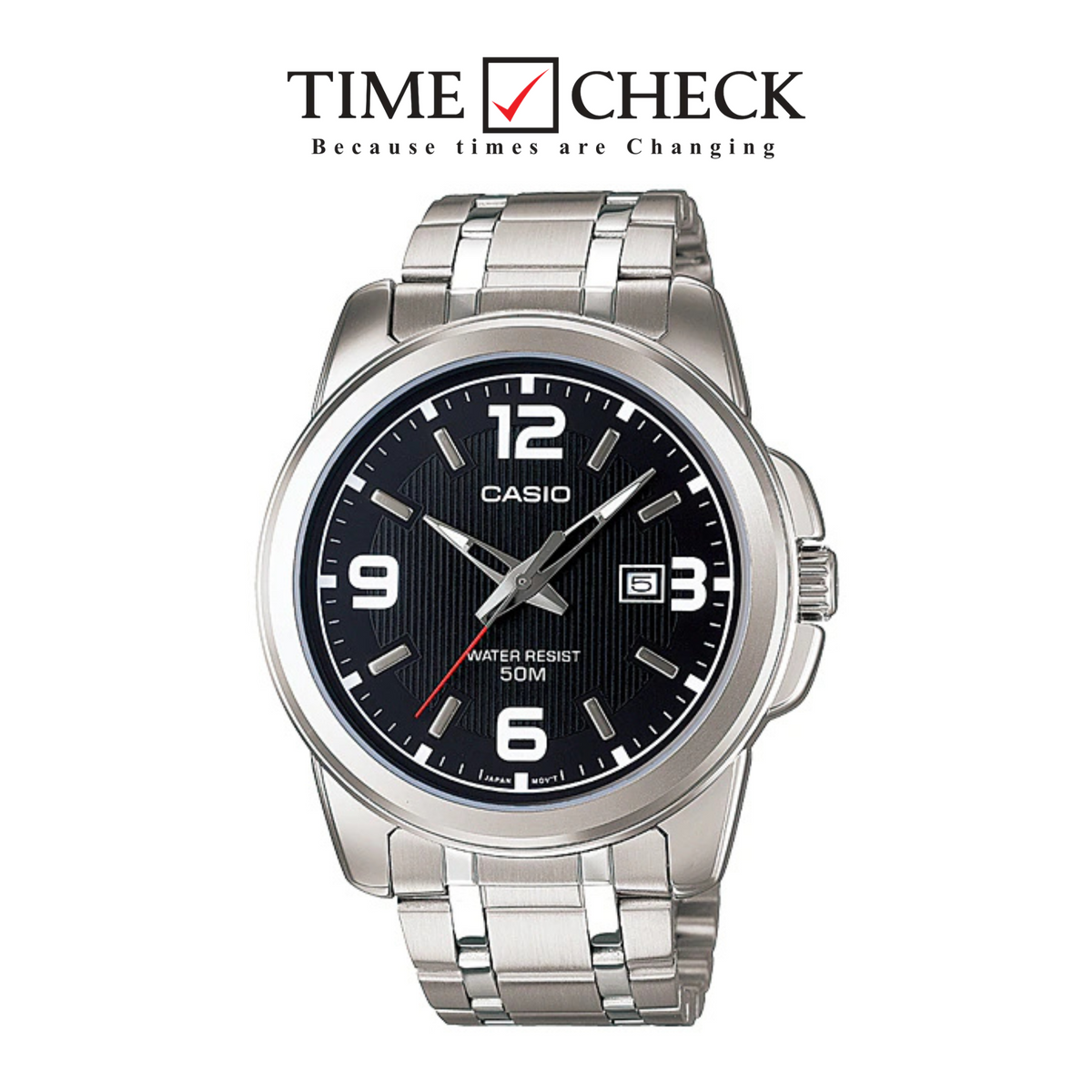 MTP-1314D-1AVDF Casio Black Dial Stainless Steel Analog Quartz Men's Watch.